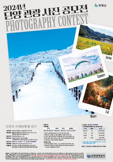 군에 따르면 지역의 명소, 야경, 풍경 등 다채로운 모습을 확보하고 아름다운 단양의 사계절을 홍보하고자 공모전을 개최했다.