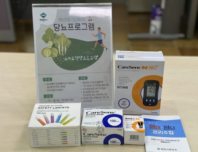 혈당계, 혈당스틱 등 가정에서 체크할수 있도록 물품도 지원된다.