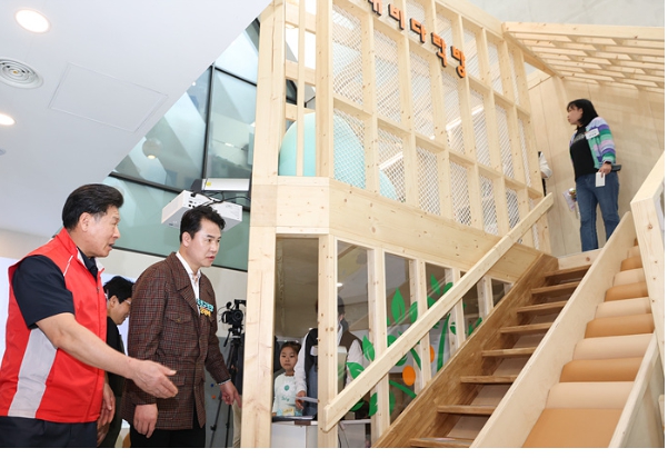 ![]() 오언석 도봉구청장이 도깨비다락방 내부를 둘러보고 있다 |
