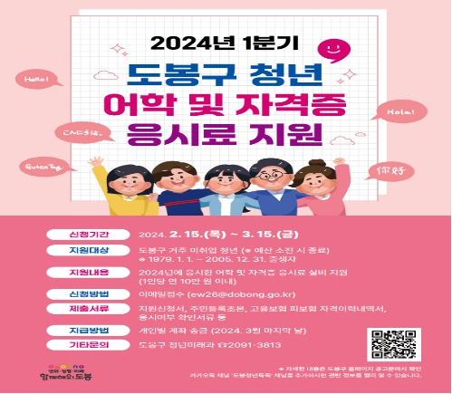 ![]() 도봉구 청년 어학 및 자격증 응시료 지원 홍보 포스터 |