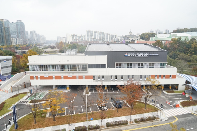 금곡공원 국민체육센터는 2021년 6월부터 최근까지 2년 6개월간 총사업비 282억원(국비 27억원 포함)이 투입돼 지하 1층, 지상 3층, 건축 전체면적 8609㎡ 규모로 지어졌다.