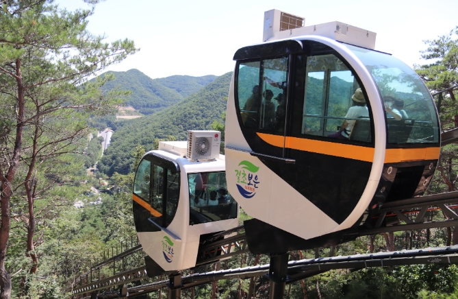 이동 중 창밖을 통해 속리산과 구병산 등 천혜의 절경을 눈에 담을 수 있고 높은 경사각 때문에 여느 모노레일과 달리 아찔한 스릴감도 느낄 수 있다.