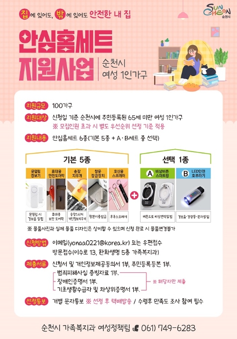 ![]() 순천시, 여성 1인 가구 안전을 위해 ‘안심 홈세트’ 지원 |