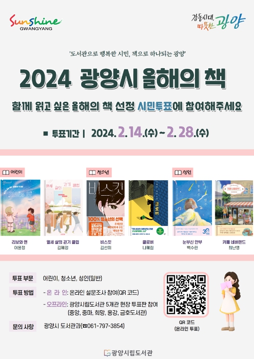 광양시 2024 올해의 책은 이번 시민투표 결과를 토대로 오는 3월 광양시립도서관운영위원회의 최종 심의를 거쳐 확정된다.