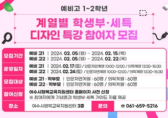 ![]() 여수시, ‘계열별 학생부․세특 디자인 특강’ 운영 |