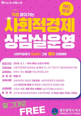 ![]() 사회적경제가 궁금하다면 광주광역시 서구청이 어디든지 찾아갑니다! |