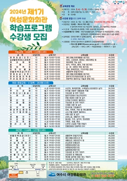 ![]() 여수시 여성문화회관, 제1기 학습프로그램 수강생 모집 |