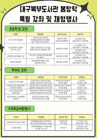 ![]() 대구북부도서관과 함께 보내는 슬기로운 봄방학 |