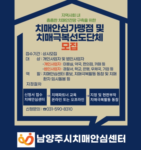 ![]() 남양주보건소 치매안심센터, 치매안심가맹점 및 치매극복선도단체 모집 |