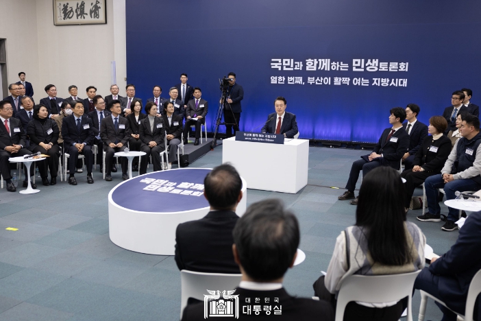 ![]() 2월 13일 윤석열 대통령은 부산광역시청에서 '부산이 활짝 여는 지방시대'를 주제로 열한 번째 「국민과 함께하는 민생토론회」를 개최했다 |