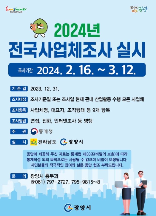 ![]() 광양시, 2024년 전국사업체조사 실시 |