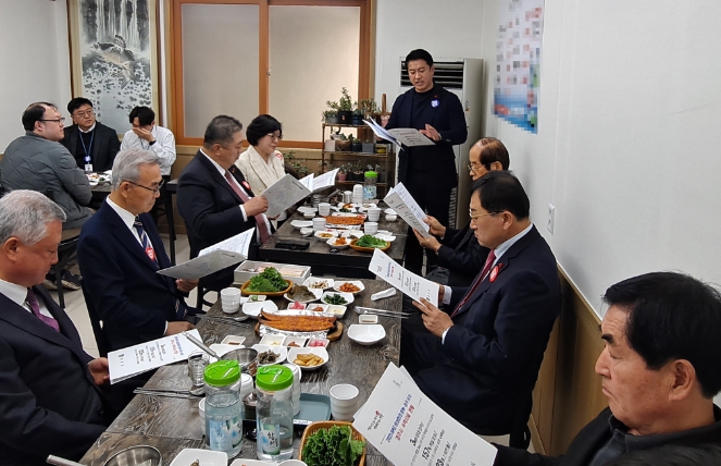 ![]() 지난 13일 APEC 경주유치 범시민추진위원회와 신년 오찬 간담회를 갖고 추진사항을 점검하고 있다. |