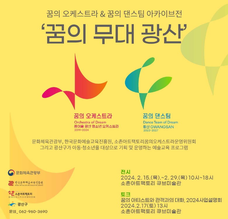 전시는 사업 운영 주체인 ‘소촌아트팩토리 꿈의 오케스트라 운영위원회’에서 주관하고, 광산구가 후원한다.