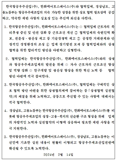 ![]() 항공우주제조업 상생협력 확산을 위한 공동선언문 |