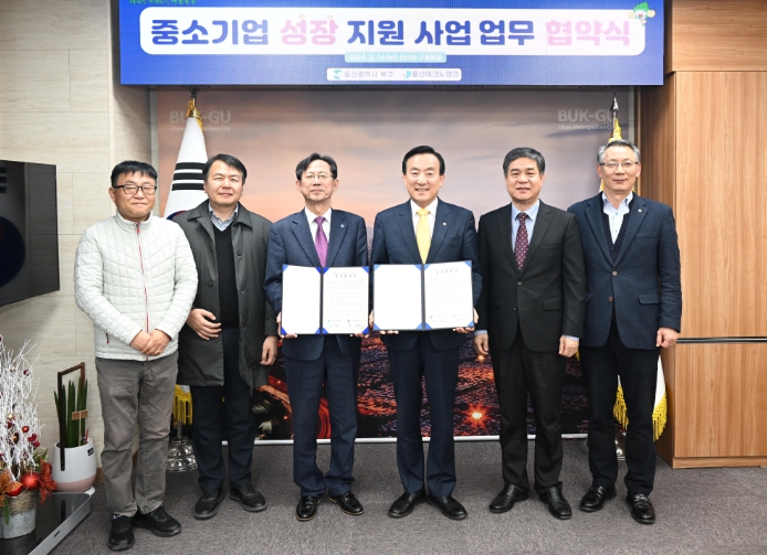 북구는 14일 구청장실에서 울산테크노파크와 2024년 중소기업 성장 지원사업 업무 협약을 체결했다.