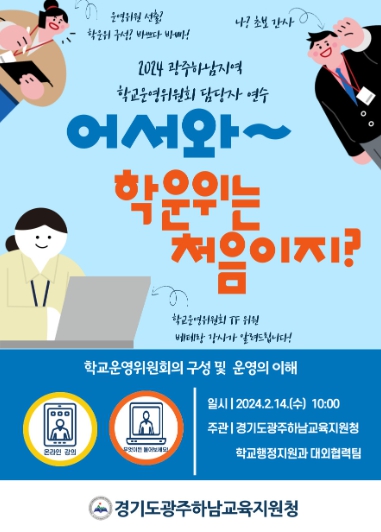 이번 연수는 담당자의 역량 강화를 통해 학교운영위원회가 민주적으로 운영될 수 있는 기반을 마련하고자 기획했으며, 2024학년도에 새롭게 구성되는 학교(유치원)운영위원회의 적법한 구성 및 회의 운영 방법에 대해 교육을 진행했다.