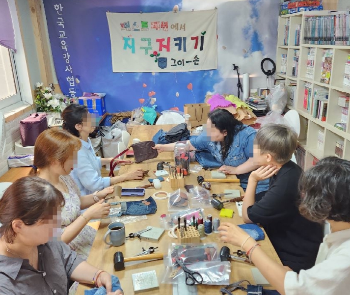 ![]() 강북구 평생학습 커뮤니티 '그이-손'이 패스트패션에서 지구지키기란 테마로 리폼 활동을 하고 있다. |