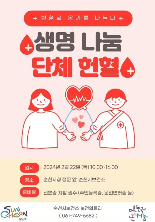 ![]() 순천시, 동절기 혈액확보를 위한 사랑 나눔 헌혈 행사 |