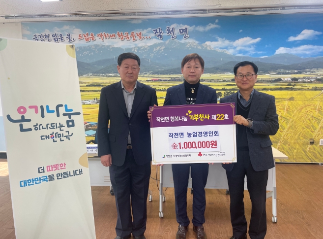 한편, 박정식 작천면장은 “설 명절을 앞두고 2024년을 맞아 첫 기부에 동참해주셔서 너무 감사 드린다”며 “후원된 기탁금은 복지 사각지대에서 어려움을 겪고 있는 취약 계층이나 장애인, 독거 어르신들에게 잘 전달해 행복한 작천면을 만들겠다”고 밝혔다.