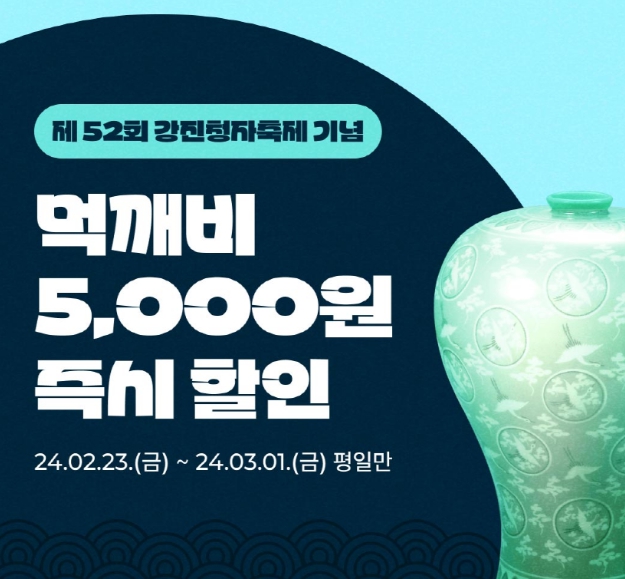 이벤트는 강진청자축제 기간과 강진읍 상가활성화를 위해 일요일까지 운영되며, 사업비 2천만원 소진 시까지 진행될 예정이다.