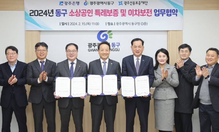 이를 위해 동구는 15일 광주은행·광주신용보증재단과 ‘2024년 동구 소상공인 특례보증 및 이차보전 협약’을 체결했다. 이번 협약으로 동구와 광주은행이 광주신용보증재단에 1억 원을 출연하고, 광주신보에서는 12억 원 한도 내에서 대출 특례보증을 실시한다.