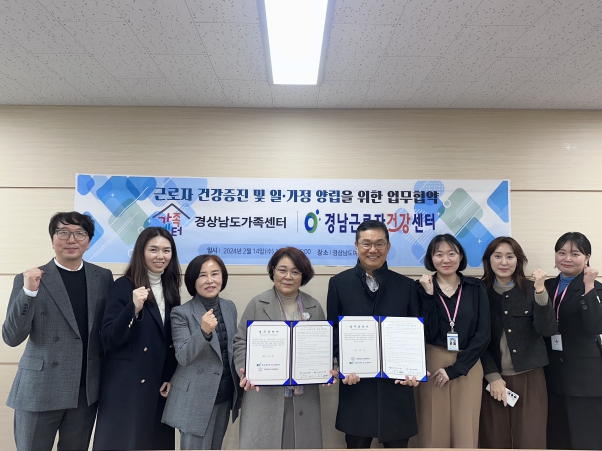 경남가족센터와 경남근로자건강센터는 근로자 건강진단 결과 상담, 직무 스트레스 등에 대한 평가 및 상담, 기타 직업적 요인에 의한 질병 예방 및 관리 방안 제안 등 건강센터 서비스 연계를 통해 근로자의 직업건강증진을 위해 상호 협력하기로 했다.