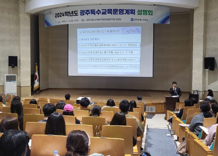 시교육청은 광주교육시민협치진흥원설립추진단 대강당에서 설명회를 통해 올해 광주 특수교육 방향과 정책을 안내했다. 또 장애학생 행동중재 가이드라인에 대한 심도있는 설명도 이뤄졌다.