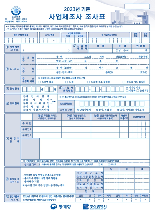 ![]() 2023년 기준 사업체조사 조사표 |