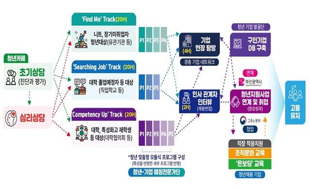 시는 인재 발굴과 육성, 기업발굴과 매칭, 기업 적응, 고용유지의 4단계 지원체계로, 부산지역 청년수요 맞춤형 토탈케어 시스템을 구축할 계획이다.