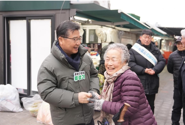 ![]() 설을 앞두고 전통시장을 찾았던 류 구청장이 어르신과 인사를 나누고 있다. |