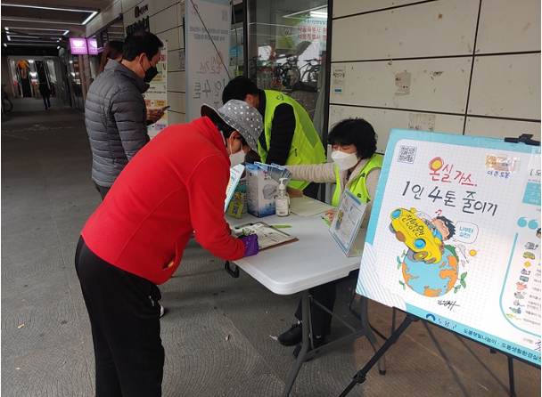 ![]() 도봉구 주민이 ‘온실가스 1인 4톤 줄이기 실천약속‘ 캠페인에 참여하고 있다. |