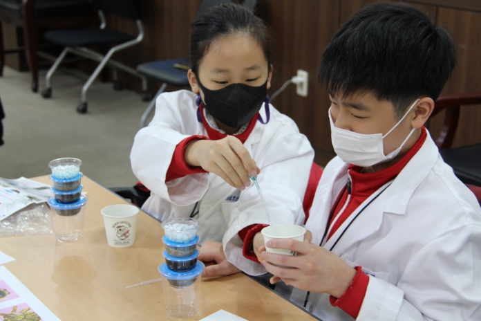 과학체험교실 프로그램은 학생들이 직접 실험해보고 결과물을 작성해보는 것으로 구성됐다.