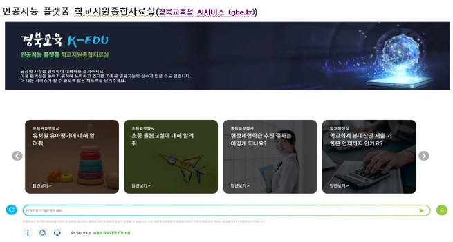 임종식 교육감은 “우리 아이들이 자신의 꿈을 마음껏 펼쳐 글로벌 인재로 성장할 수 있는 디지털 교육환경을 구축하겠다”라며, “새롭게 업그레이드된 인공지능 플랫폼 학교지원종합자료실을 더욱 많은 분이 활용하시길 바란다”라고 말했다.