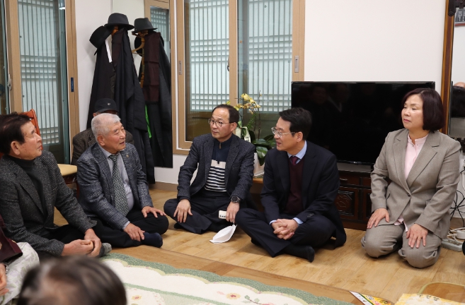 ![]() 강진원 군수가 수성당 어르신들과 이야기를 나누고 있다. |
