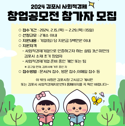 ![]() 2024 김포시 사회적경제 창업 공모전 개최 |