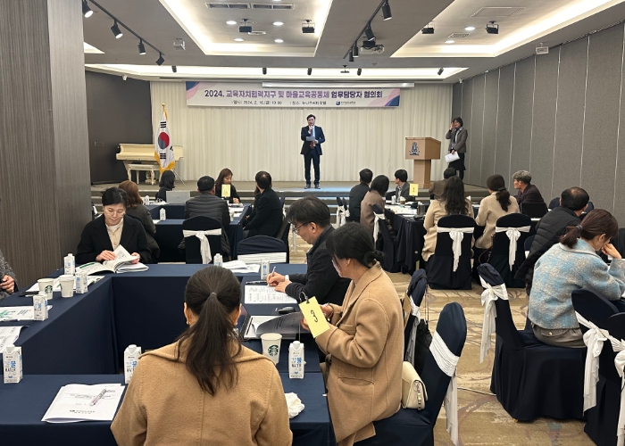 ![]() 16일 뉴나주 시티 호텔에서 ‘2024 교육자치협력지구 및 마을교육공동체’ 업무담당자 협의회가 진행되고 있다. |