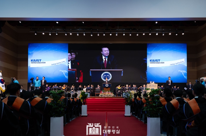 ![]() 2월 16일 윤석열 대통령은 한국과학기술원(카이스트)에서 개최된 2024년 학위수여식에 참석했다. |
