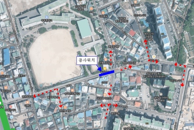 공사는 2차선도로 중앙에 있는 송수관로를 교체하는 것으로, 동구 소태동 우리마트 사거리 일대 도로의 완전 차단이 불가피하다.
