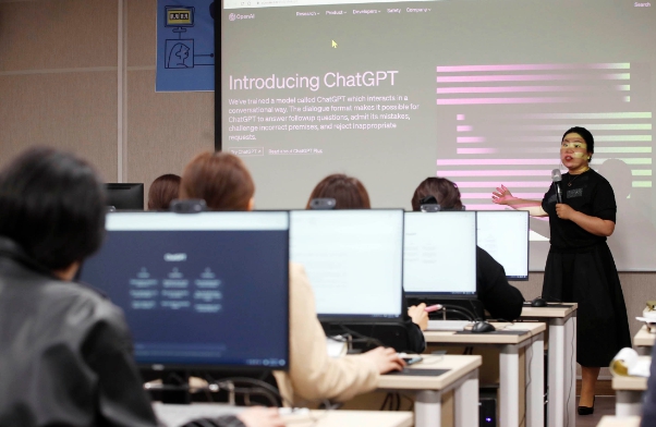 ![]() 2023년 챗GPT 이해와 활용 직원 교육 모습. |