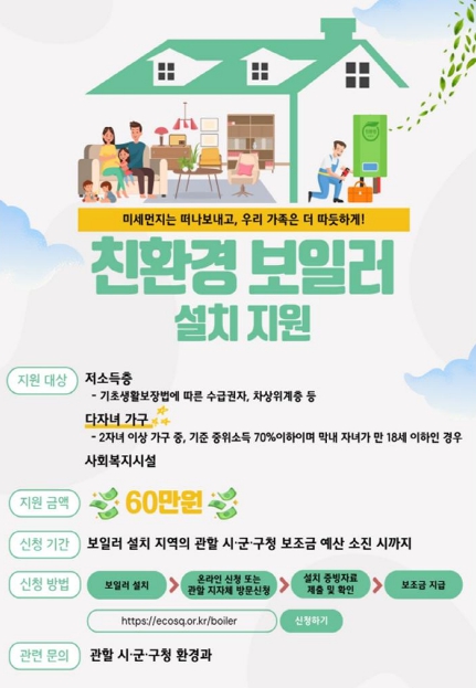 사업 지원대상은 2024년 가정용 친환경 보일러를 교체(설치)했거나 교체(설치) 예정인 저소득층과 취약계층 등이다.