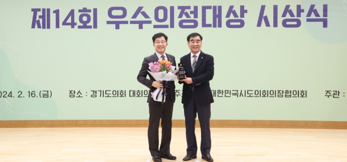 한편, 대한민국시도의회의장협의회 우수의정대상은 전국 지방의원을 대상으로 능동적이고 헌신적인 의정활동과 함께 지역 발전과 지방자치 발전에 기여한 공로가 큰 의원에게 수여되는 상이다.