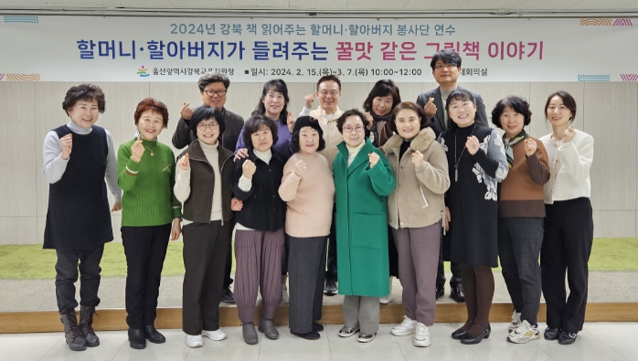 강북교육지원청은 이달 15일부터 3월 7일까지 6회에 걸쳐 대회의실에서 ‘2024년 강북 책 읽어주는 할머니⋅할아버지 봉사단 연수’를 진행한다.