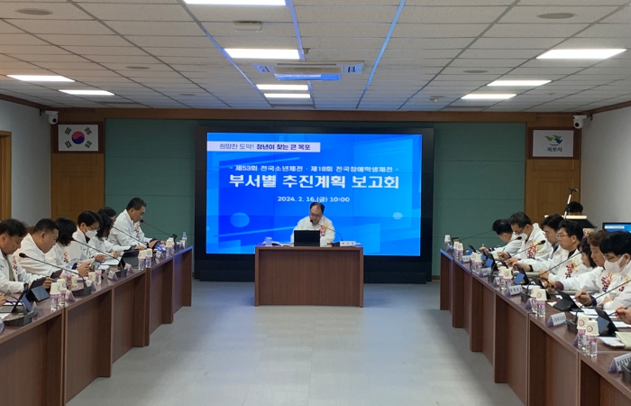 지난 16일 오전 10시 시청 상황실에서 이상진 부시장을 주재로 30여명의 간부공무원이 참가한 가운데 제1차 전국소년·장애학생체전 추진계획 보고회를 가졌다.