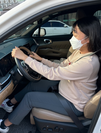 ![]() 임산부가 임산부 전용 차량 안전벨트를 착용하고 있다. |