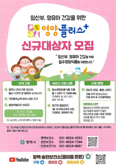 ![]() 평택시 안중보건지소, 임산부와 영유아 위한 ‘영양플러스’ 신규 대상자 모집 |