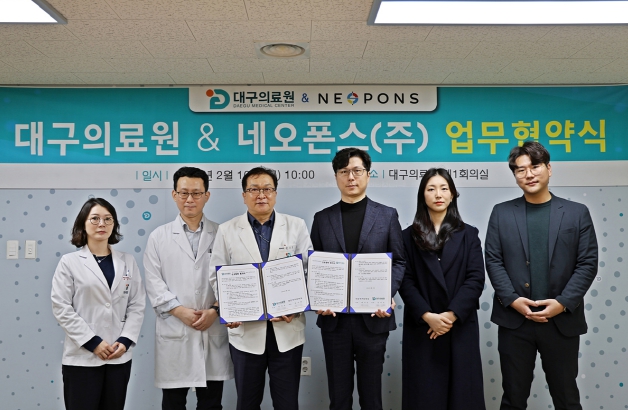 이날 협약식에는 김시오 대구의료원장, 박기수 네오폰스 대표 및 양 기관 관계자 10여 명이 참석한 가운데 협약식과 간담회 순으로 진행됐다.