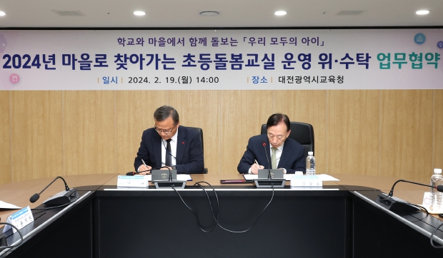 설동호 대전광역시교육감은 “마을로 찾아가는 초등돌봄교실은 학교 밖 돌봄서비스 제공으로 돌봄 공백 및 사각지대를 해소하는 데 의미가 큰 사업이다.”라며“올해 늘봄학교가 확대되어 지역사회의 다양한 교육자원 연계가 절실한 상황에서 이번 협약 기관들과 협력하여 학부모들의 돌봄 부담을 해소할 수 있도록 적극적으로 지원하겠다.”라고 말했다.