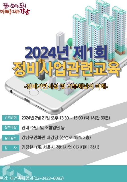조성명 강남구청장은 “앞으로 재건축·재개발을 비롯해 신청사 건립, 영동대로 지하공간 복합개발 등 대규모 개발사업으로 강남의 도시 환경구조가 바뀌는 大전환의 시대를 맞아 구민과의 소통이 그 어느 때보다 중요하다”며 “주민의 생활과 직결된 재건축·재개발 사업에 대해서는 정기적인 아카데미 운영을 통해 정비사업의 신속성과 투명성을 모두 높이겠다”고 밝혔다.