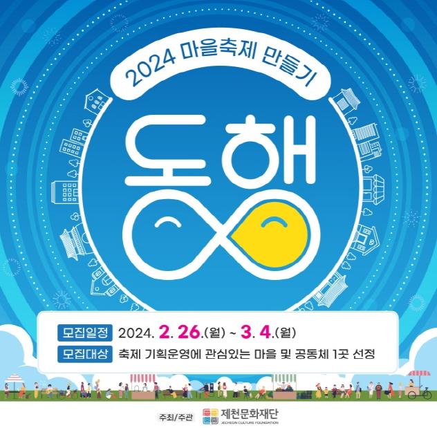 제천문화재단에서 주최하는 '2024 마을축제 만들기‘동행’' 사업은 제천 지역의 마을 및 공동체를 대상으로 축제 기획 교육 컨설팅을 통한 역량 강화 교육이다. 주민이 주도적으로 축제를 기획하고 운영해 주민 주도형 자생축제 기반을 마련하기 위해 기획됐다.