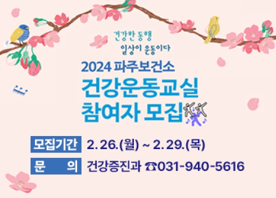 ![]() 파주보건소, 2024년 상반기 건강운동교실 참여자 모집 |